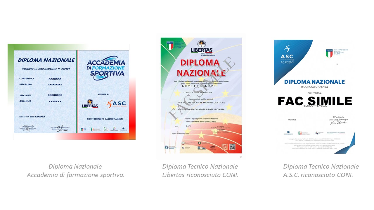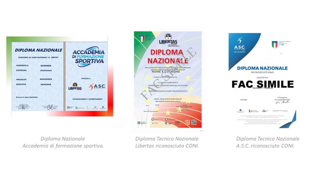 L’ accdemia di formazione sportiva rilascia le certificazioni degli enti di promozione sportive A.S.C. e LIBERTAS .